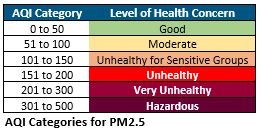 AQI categories table (pm2.5)