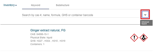 Screenshot of UC Chemicals inventory search in UC Chemicals platform. Used to determine hazard category